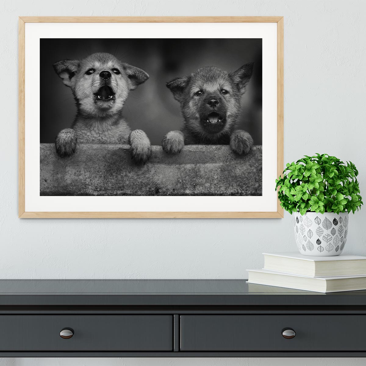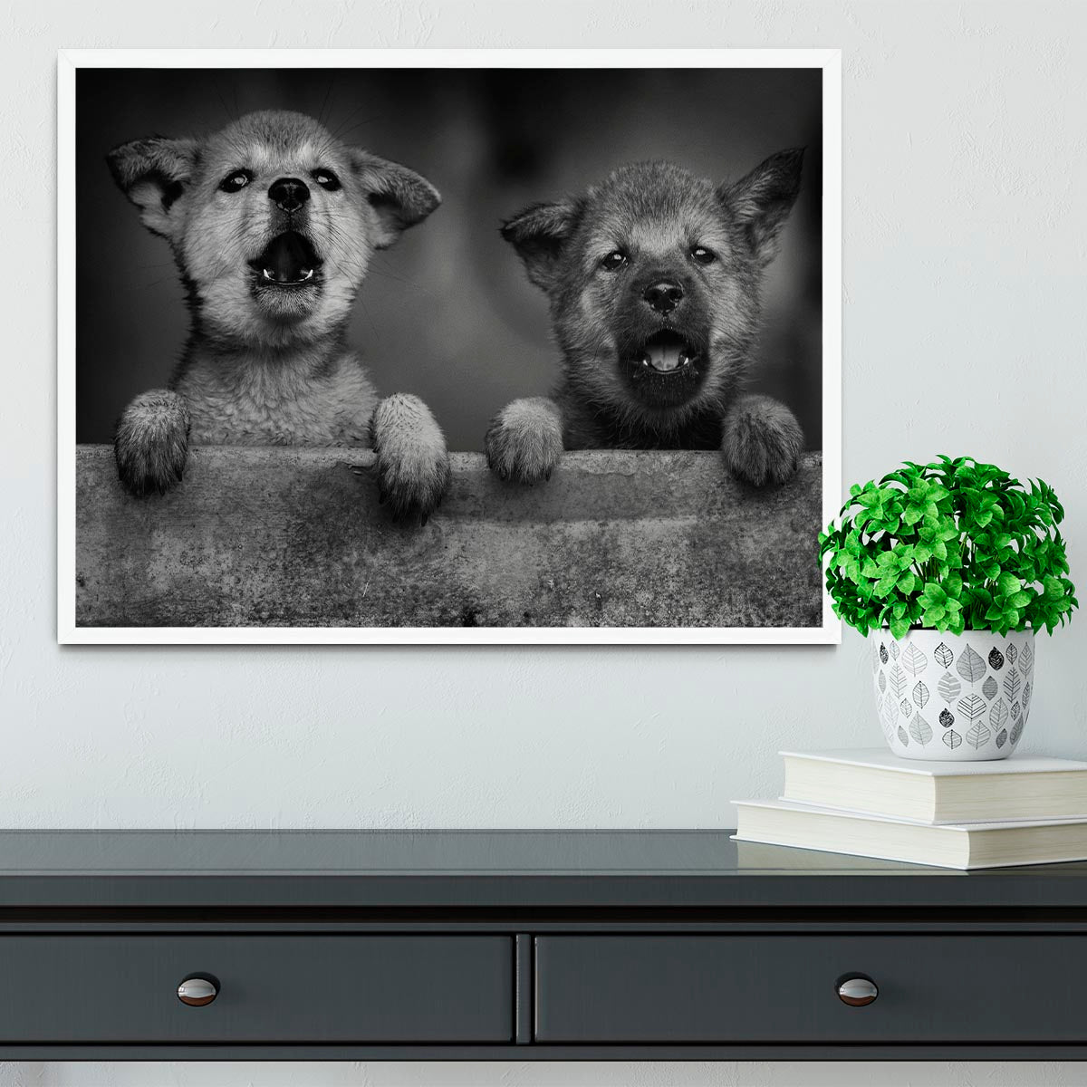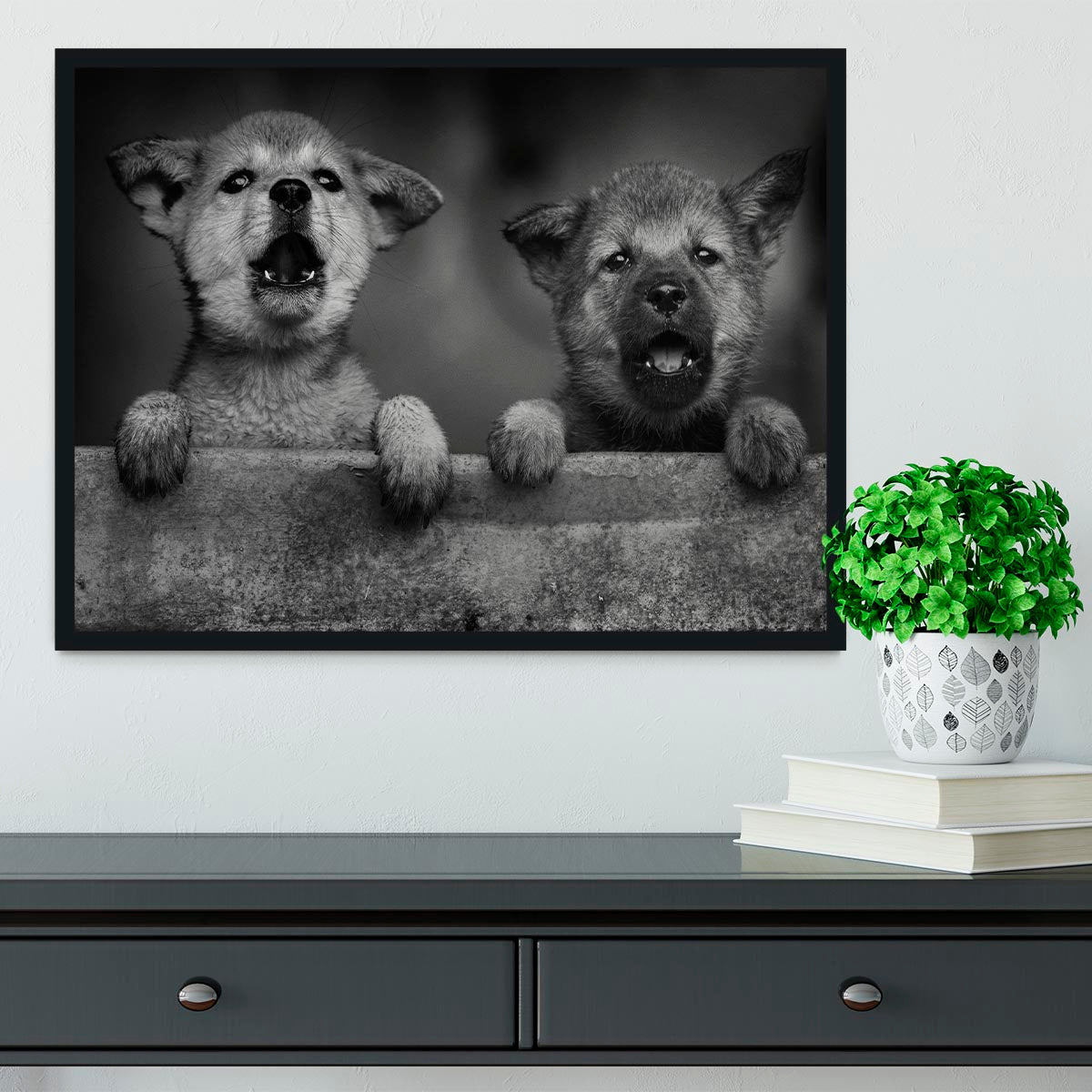 Black and White Puppies Framed Print