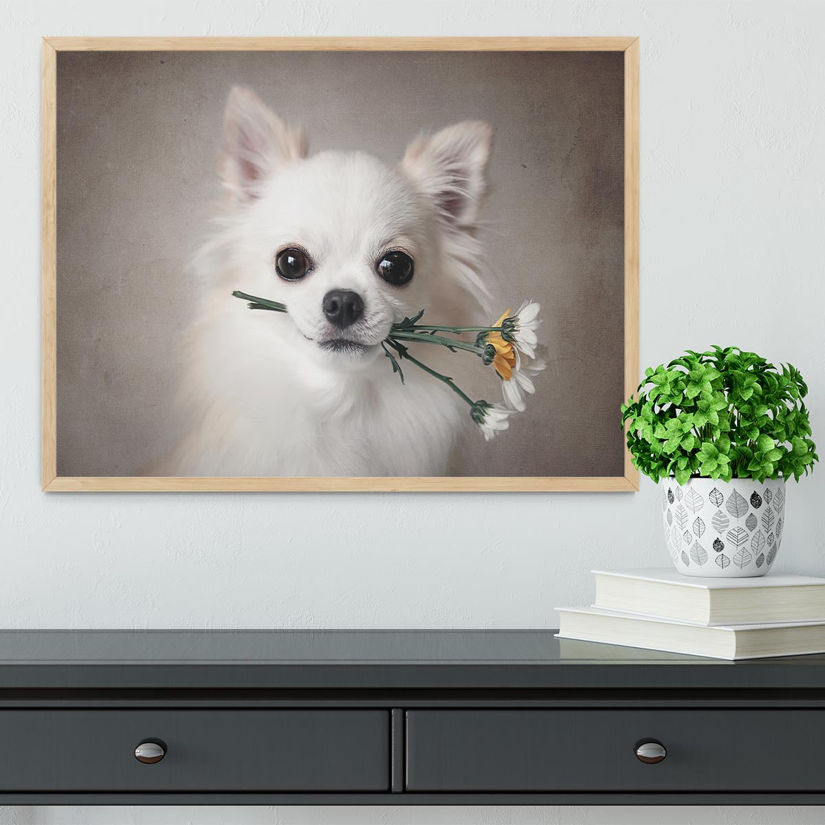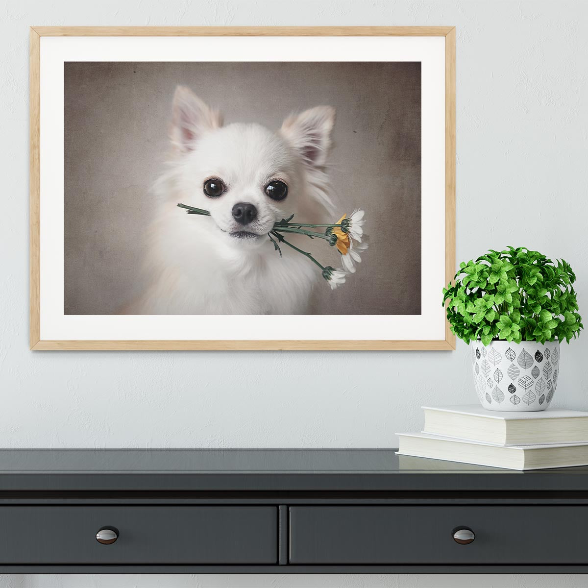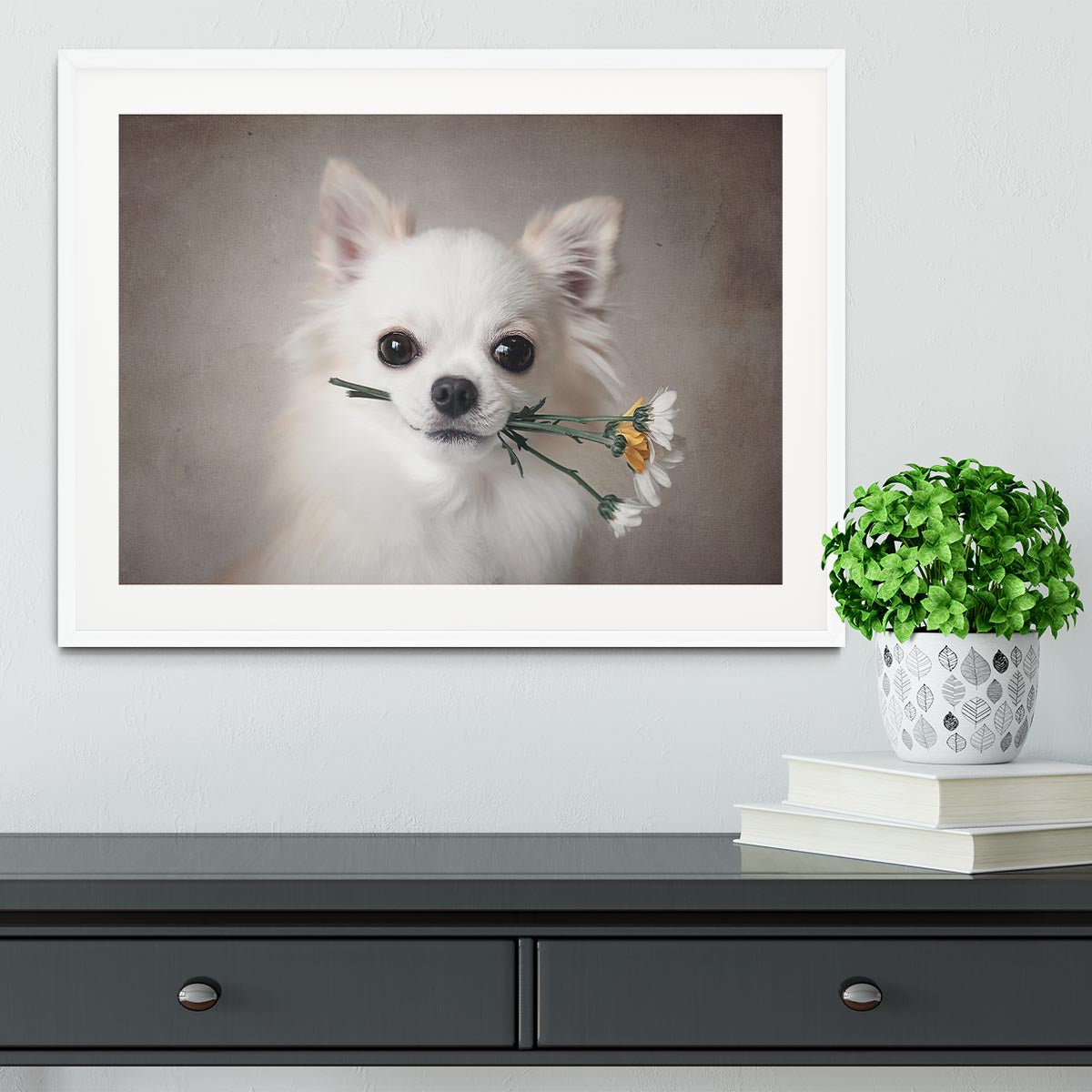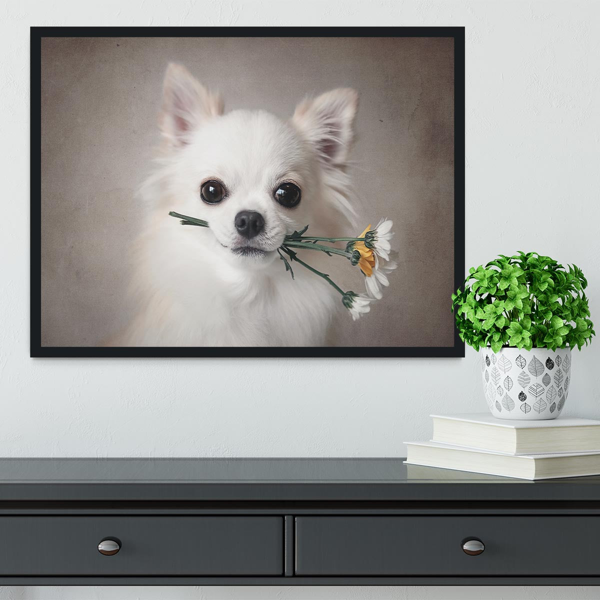 Chihuahua with flowers Framed Print